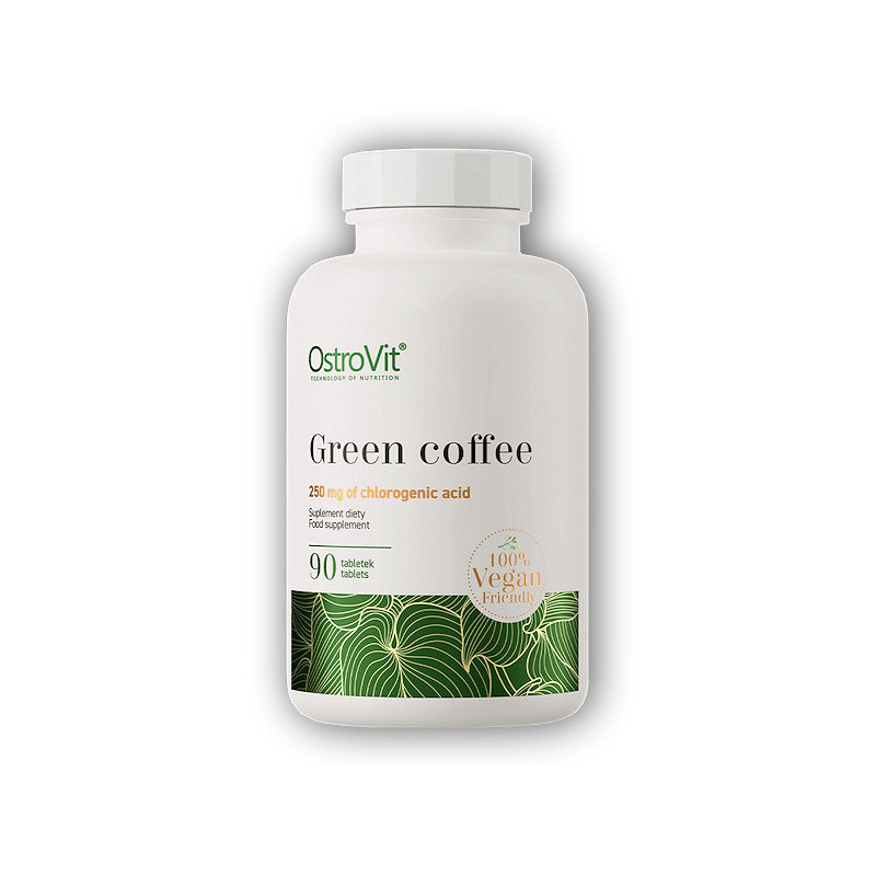 OstroVit Green Coffee VEGE to najwyższej jakości suplement diety w tabletkach z ekstraktem z ziaren zielonej kawy. Każda tabletka zawiera 500 mg czystego ekstraktu, który charakteryzuje się wysoką zawartością kofeiny. Ponadto jest doskonałym źródłem kwasu chlorogenowego.