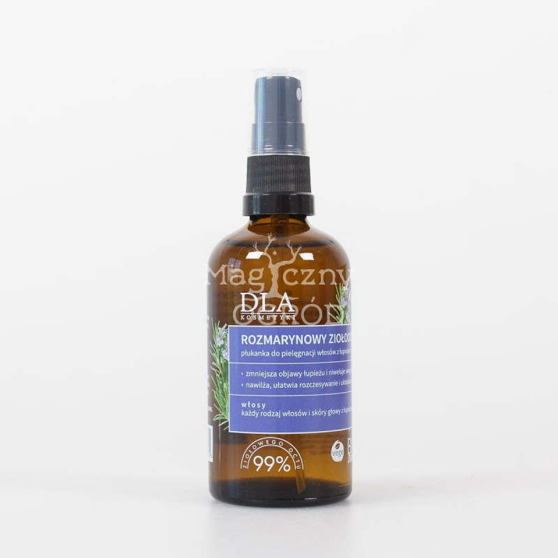 Ocet ziołowy rozmarynowy to płukanka przeznaczona dla osób z kapryśną skórą głowy – swędzącą, skłonną do łupieżu, podrażnień, łuszczenia się czy łojotoku. Łączy w sobie moc rozmarynu i octu jabłkowego z pachnącymi olejkami eterycznymi o właściwościach przeciwdrobnoustrojowych.