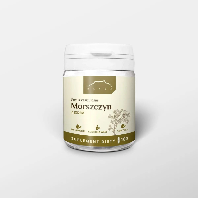 Składniki: Ekstrakt z wodorostów bąbelkowych 200mg - kapsułki z jodem - morszczyn pęcherzykowaty - 100 kapsułek