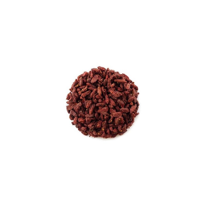 Suszone owoce – jagody goji, Bez laktozy, Bezglutenowe, LCHF, Wegańskie, Chiny, Składniki: Goji, Opakowanie: zamykana torba na zamek błyskawiczny