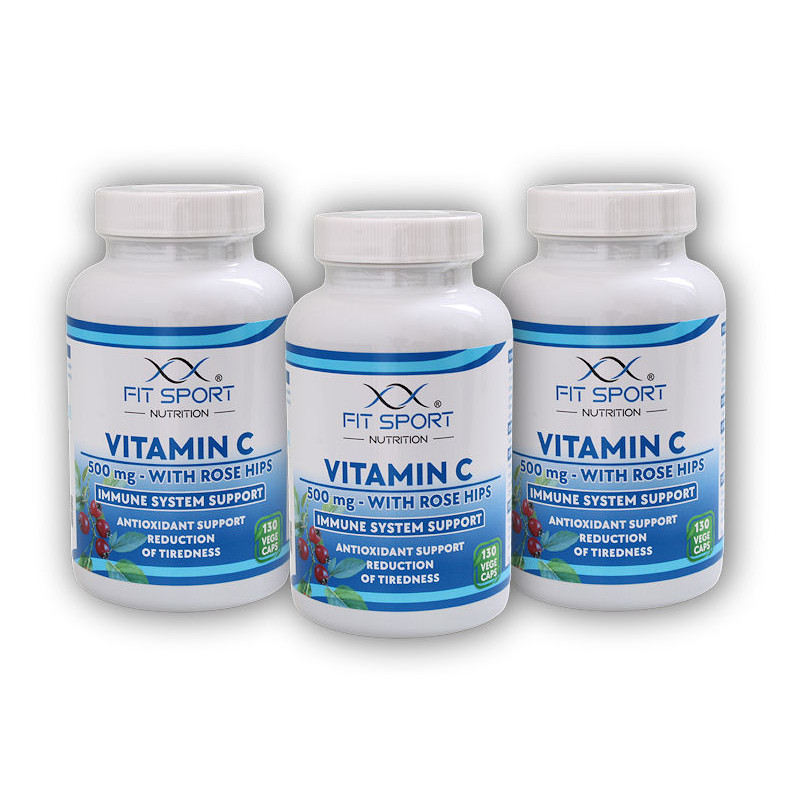 Kompozycja: Witamina C (kwas L-askorbinowy), kapsułka warzywna (HPMC), środek przeciwzgniatkowy: stearyan magnezu, ekstrakt z proszku z dzikiej róży 5:1 (owoc).