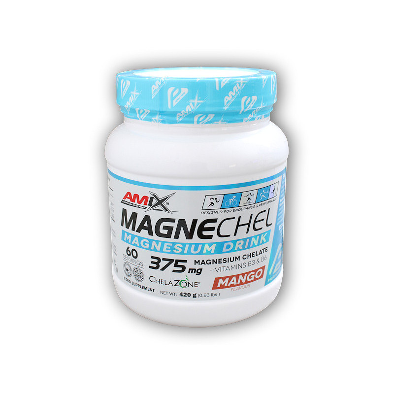 Amix™ MagneChel - Magnesium Chelate Drink to doskonały suplement diety ze 100% zawartością łatwo przyswajalnej formy magnezu, chelatu diglicynianu magnezu w połączeniu z witaminą B3 - niacyną i witaminą B6. Chelatowane minerały są naturalną formą dla organizmu człowieka. Są bardzo łatwe i szybko się wchłaniają. Wpływają one pozytywnie na ogólną użyteczność minerału, a przede wszystkim na jego skuteczność.