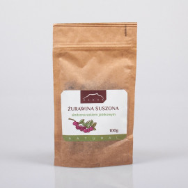 Składniki: Żurawina suszona słodzona sokiem jabłkowym - 500g