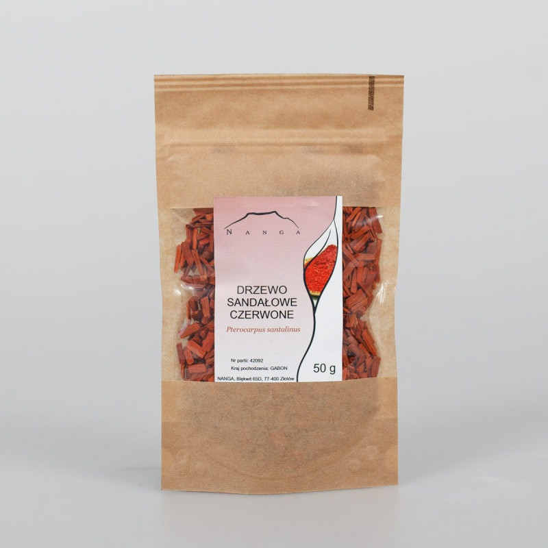 Czerwone drzewo sandałowe (Pterocarpus santalinus) Pochodzi z Indii, gdzie jest szeroko stosowane jako naturalny barwnik i surowiec ziołowy. Drzewo to jest źródłem ciemnoczerwonego drewna, z którego wyrabia się meble, figury szachowe i narzędzia. Swój piękny kolor zawdzięcza drzewu sandałowemu – barwnikowi, z którego wyrabia się kadzidła, mydło, świece i inne drobiazgi, a także farbuje się żywność i lekarstwa. Czerwone drzewo sandałowe można palić jako osobne kadzidło, ponieważ bardzo przyjemnie pachnie.