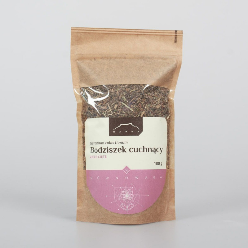 Składniki: Ziele geranium 100%. Surowiec najwyższej jakości! Geranium zawiera garbniki, flawonoidy, kwasy fenolowe, kwasy organiczne, geraninę – gorzką substancję oraz olejki eteryczne.
