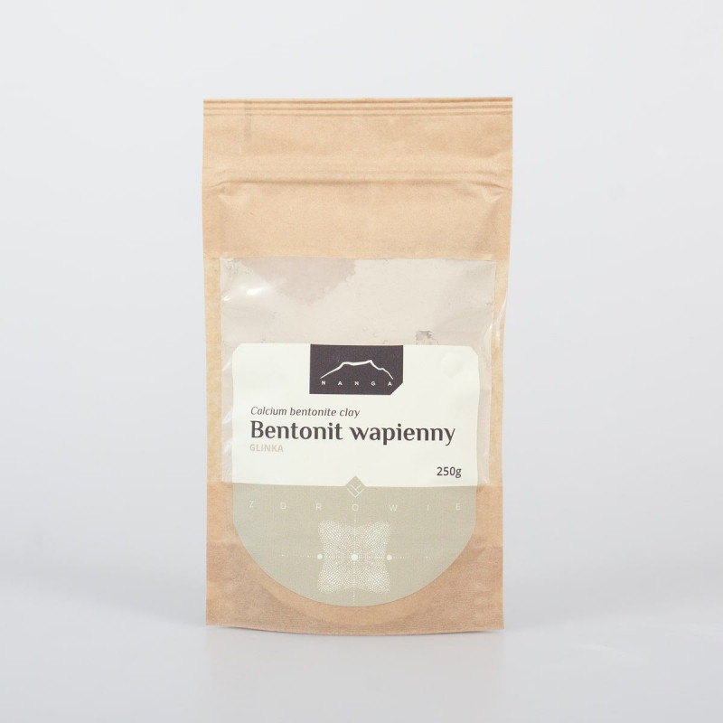 Skład: 100% bentonit wapniowy. Surowiec najwyższej jakości! BENTONIT – JAK GO STOSOWAĆ? PRZYKŁADOWE PRZEPISY Podstawowa pasta bentonitowa / maska do skóry i włosów: Aby przygotować najprostszą pastę, wystarczy wymieszać bentonit z wodą, aż do uzyskania pożądanej konsystencji. Pamiętaj, aby do mieszania składników używać wyłącznie drewnianych narzędzi i niemetalowych przyborów. Pastę można stosować jako maseczkę do twarzy i włosów lub nakładać na dotknięte obszary skóry. Po 15 minutach dokładnie spłucz maskę wodą. Stosować 1-2 razy w tygodniu. Maseczkę możesz wzbogacić o ulubione składniki, np. nierafinowane oleje roślinne, olejki eteryczne, miód, jogurt, mleko, ocet jabłkowy, napary ziołowe, hydrolaty, pulpy owocowe czy glinki kosmetyczne. Naturalny dezodorant bentonitowy: 60 ml sody oczyszczonej 60 ml bentonitu 7 łyżeczek oleju kokosowego 2 krople olejku kardamonowego 4 krople olejku geraniowego 4 krople olejku z gorzkiej pomarańczy W szklanej misce wymieszaj sodę z bentonitem za pomocą drewnianej łyżki. Stopniowo wcieraj olej kokosowy w proszek, aż będzie gładki. Możesz dodać więcej oleju. Posyp olejkami eterycznymi (możesz użyć tych wskazanych w przepisie lub innych, które lubisz) i dokładnie wymieszaj. Umieść dezodorant w czystym pojemniku i przechowuj w chłodnym miejscu. Pasta do zębów z bentonitem: 60 ml sody oczyszczonej 1 łyżeczka bentonitu 2 łyżeczki oleju kokosowego gotowanego, schłodzonego wodą 6-8 kropli olejku miętowego lub innej odrobiny nalewki ze stewii dla smaku i właściwości przeciwbakteryjnych W małym pojemniku połącz sodę oczyszczoną z bentonitem. W osobnej niemetalowej misce rozpuść olej kokosowy, a następnie stopniowo wlewaj go do suchych składników, cały czas mieszając. Dodaj tyle wody do mieszanki, aby uzyskać pożądaną konsystencję. Na koniec dodaj olejki eteryczne i 1 kroplę nalewki ze stewii i ponownie wymieszaj. Pastę przechowuj w ciemnym, chłodnym miejscu do 6 miesięcy. Przepisy pochodzą z: https://www.biome.com.au PRZECIWWSKAZANIA Nadwrażliwość na bentonit.